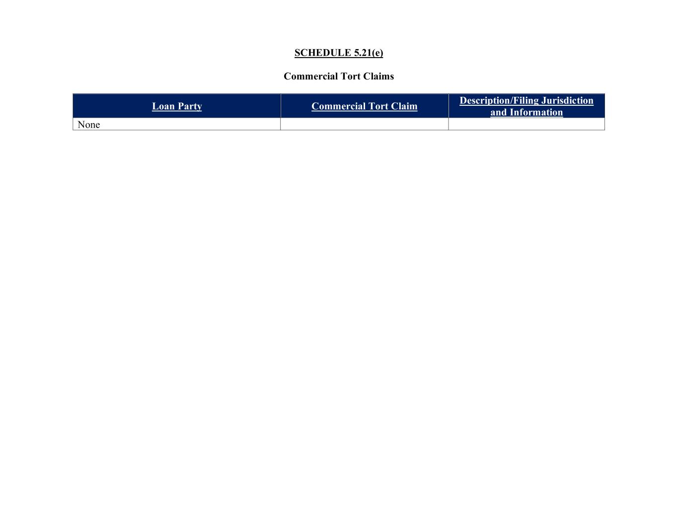SCHEDULE 5.21(e) Commercial Tort Claims Loan Party Commercial Tort Claim Description/Filing Jurisdiction and Information None