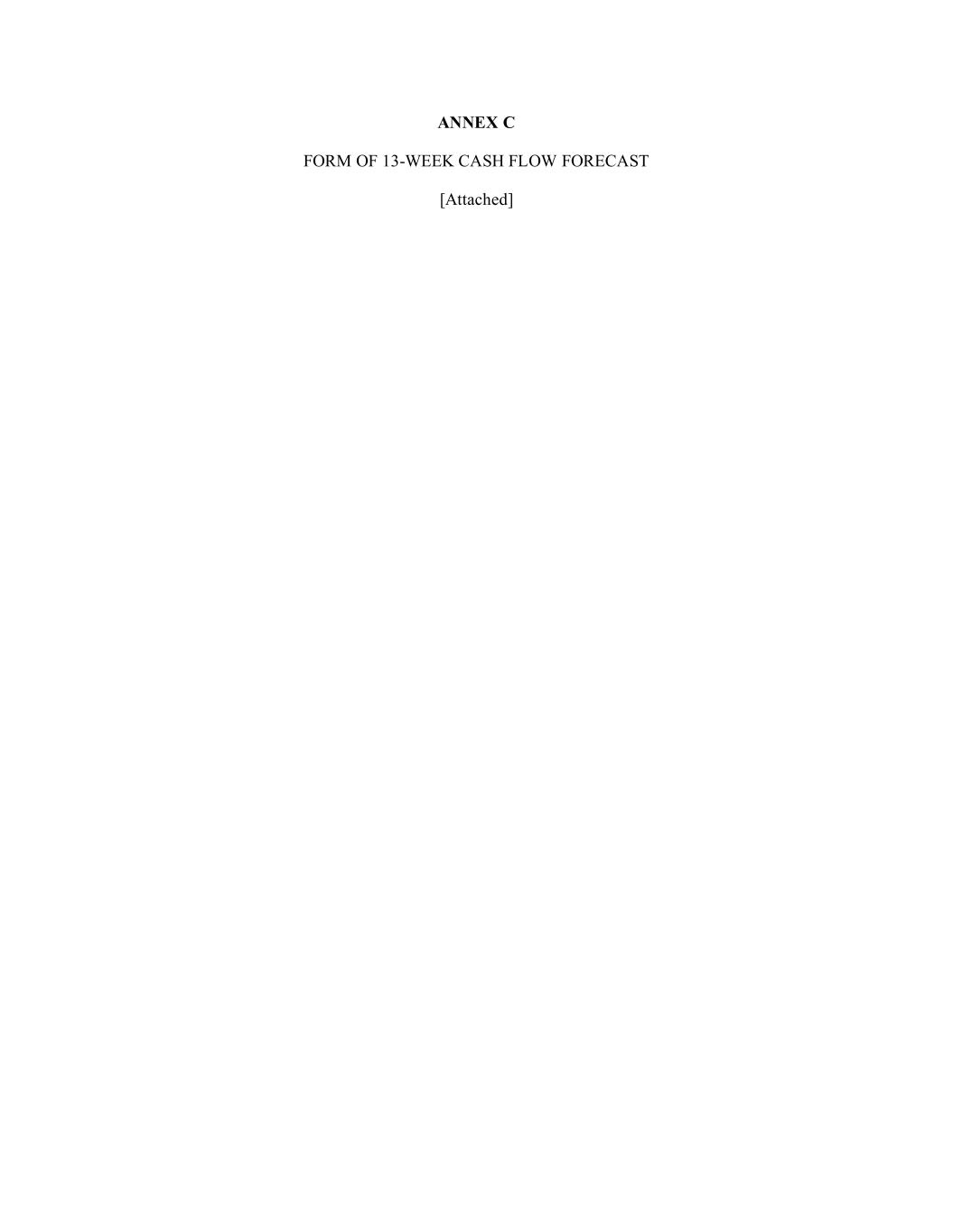 ANNEX C FORM OF 13-WEEK CASH FLOW FORECAST [Attached]