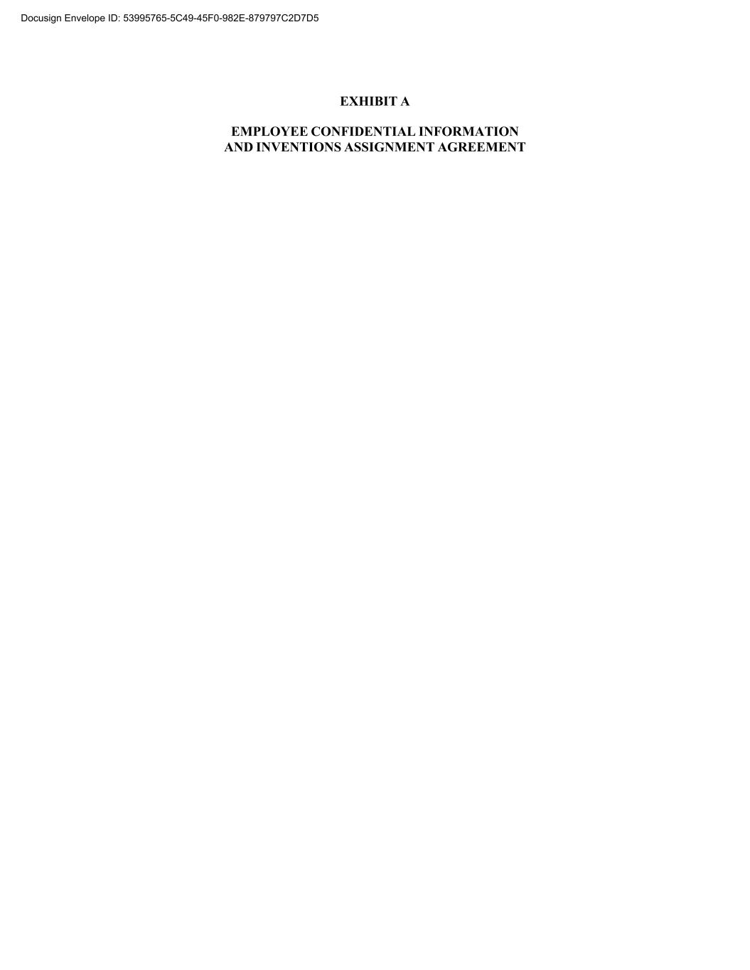EXHIBIT A EMPLOYEE CONFIDENTIAL INFORMATION AND INVENTIONS ASSIGNMENT AGREEMENT Docusign Envelope ID: 53995765-5C49-45F0-982E-879797C2D7D5