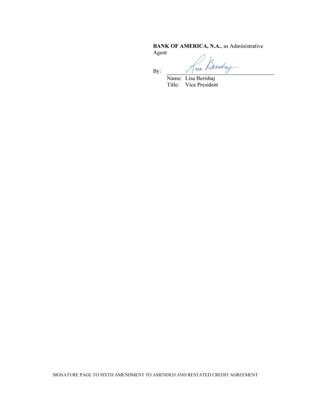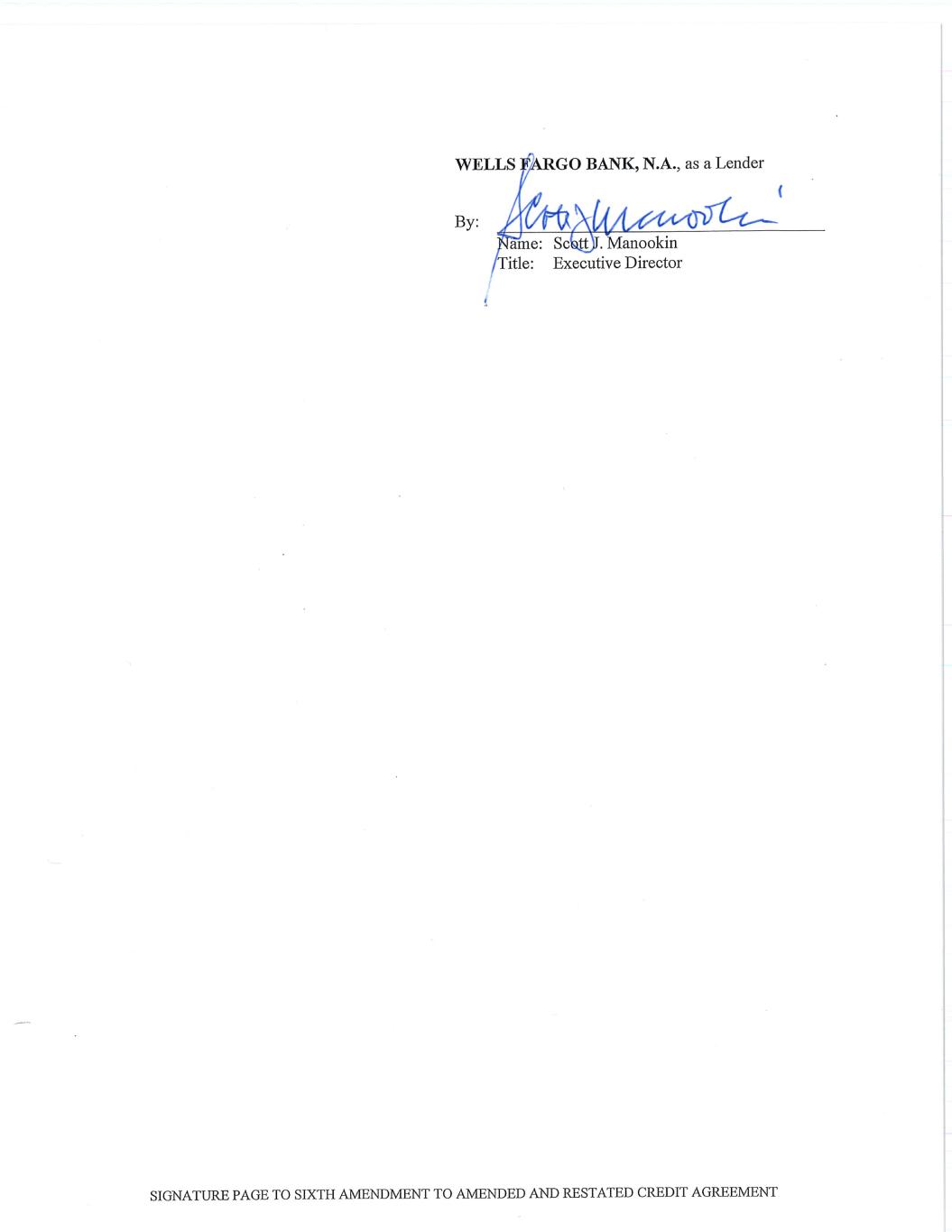 SIGNATURE PAGE TO SIXTH AMENDMENT TO AMENDED AND RESTATED CREDIT AGREEMENT CAPITAL ONE, NATIONAL ASSOCIATION, as a Lender By: Name: Andy Welicky Title: Duly Authorized Signatory