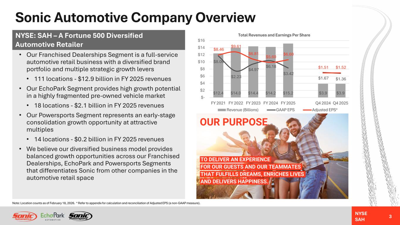 Investor Presentation | Fourth Quarter 2025 Updated February 18, 2026 SONIC AUTOMOTIVE EXHIBIT 99.2