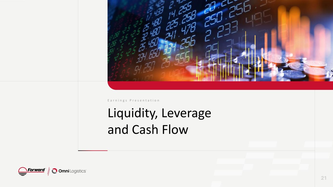 E a r n i n g s P r e s e n t a t i o n Liquidity, Leverage and Cash Flow 21