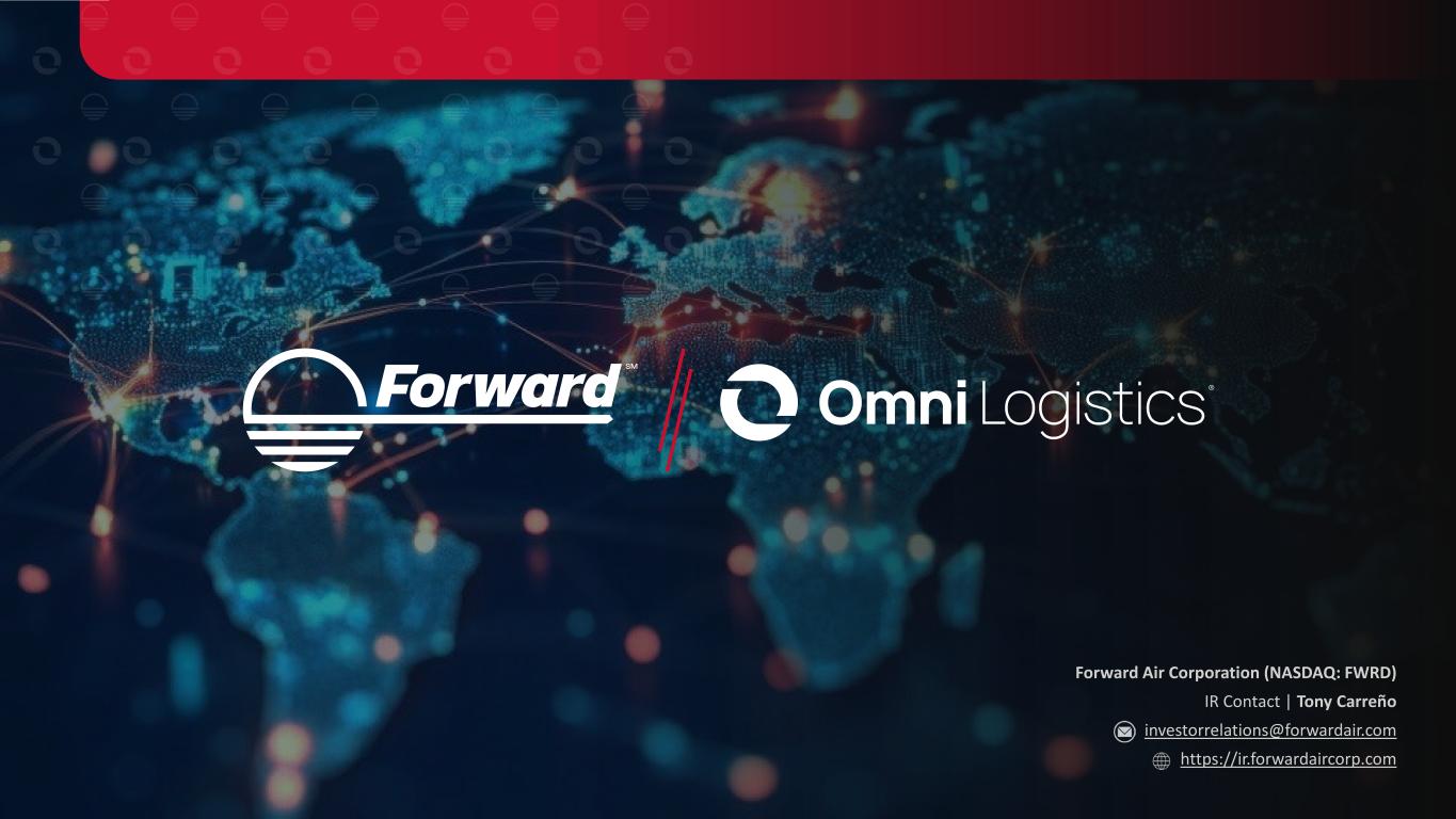 Forward Air Corporation (NASDAQ: FWRD) IR Contact | Tony Carreño investorrelations@forwardair.com https://ir.forwardaircorp.com