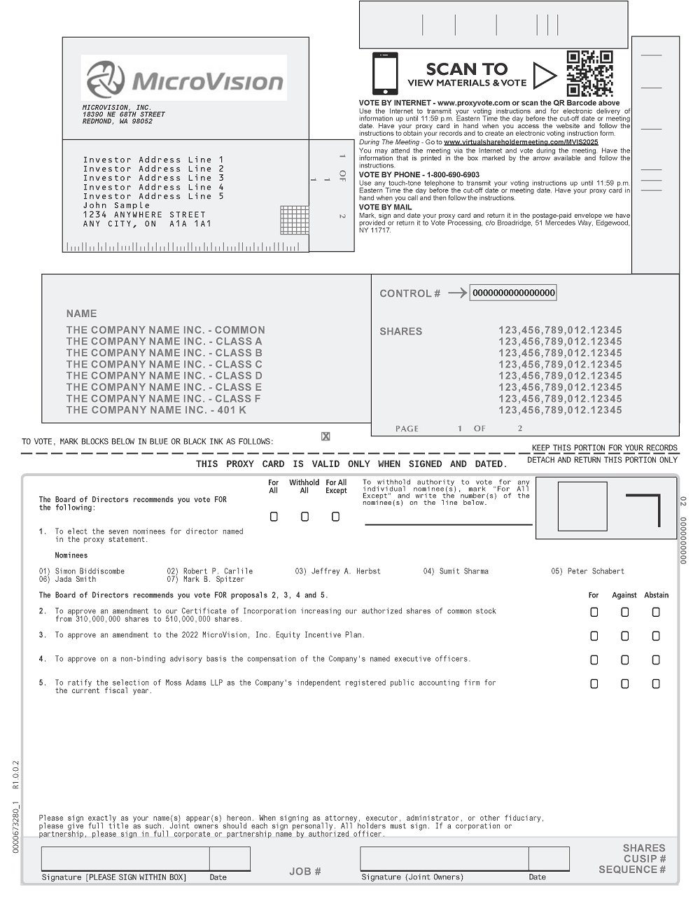 Important Notice Regarding the Availability of Proxy Materials for the Annual Meeting of Shareholders to be held on June 6, 2025. The proxy statement and the annual report to shareholders for the fiscal year ended December 31, 2024 have been mailed to shareholders and are available at https://ir.microvision.com/sec-filings.