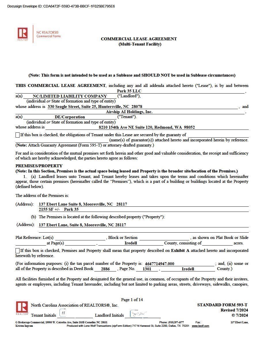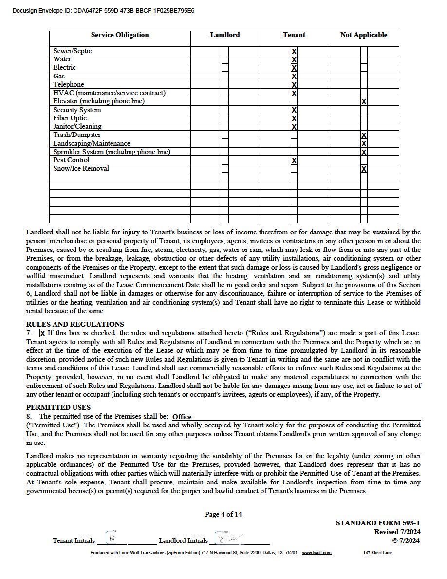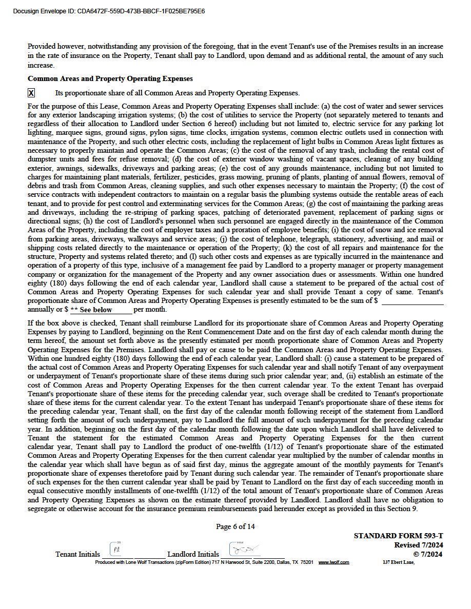 Note: Tenant shall reimburse Landlord for Tenant’s Pro Rata share of all real estate taxes, assessments, hazard and liability insurance and common area maintenance costs for Suite 8 at Park 35. The estimated 2024 NNN charges are $3.26/SF.