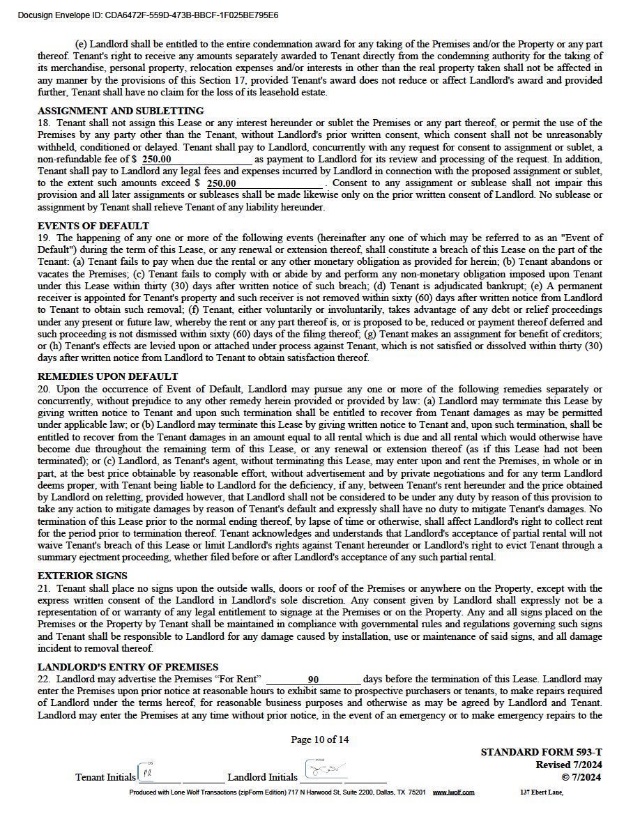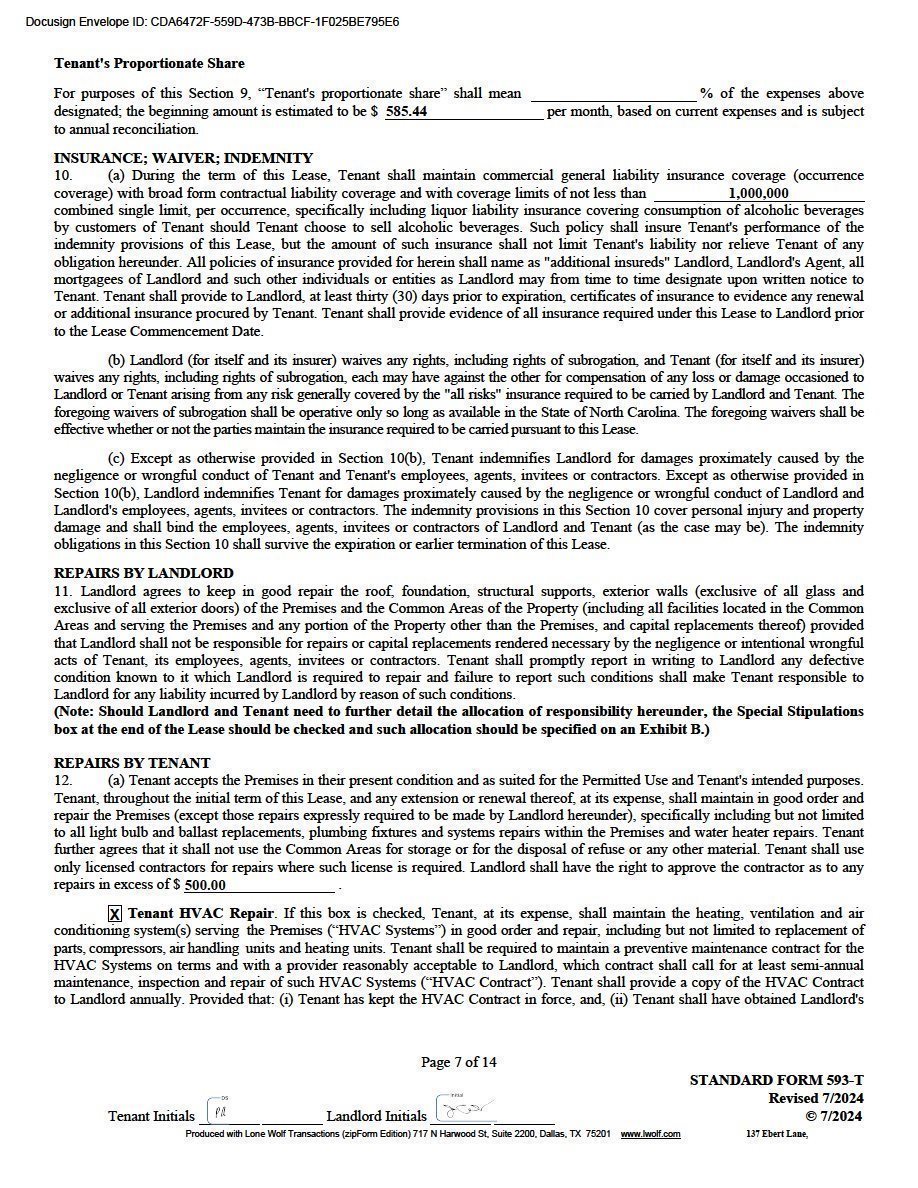 Security Deposit, 1st month Gross Rent, Certificate of Insurance $15,000 Non-Refundable Contribution towards Upfit