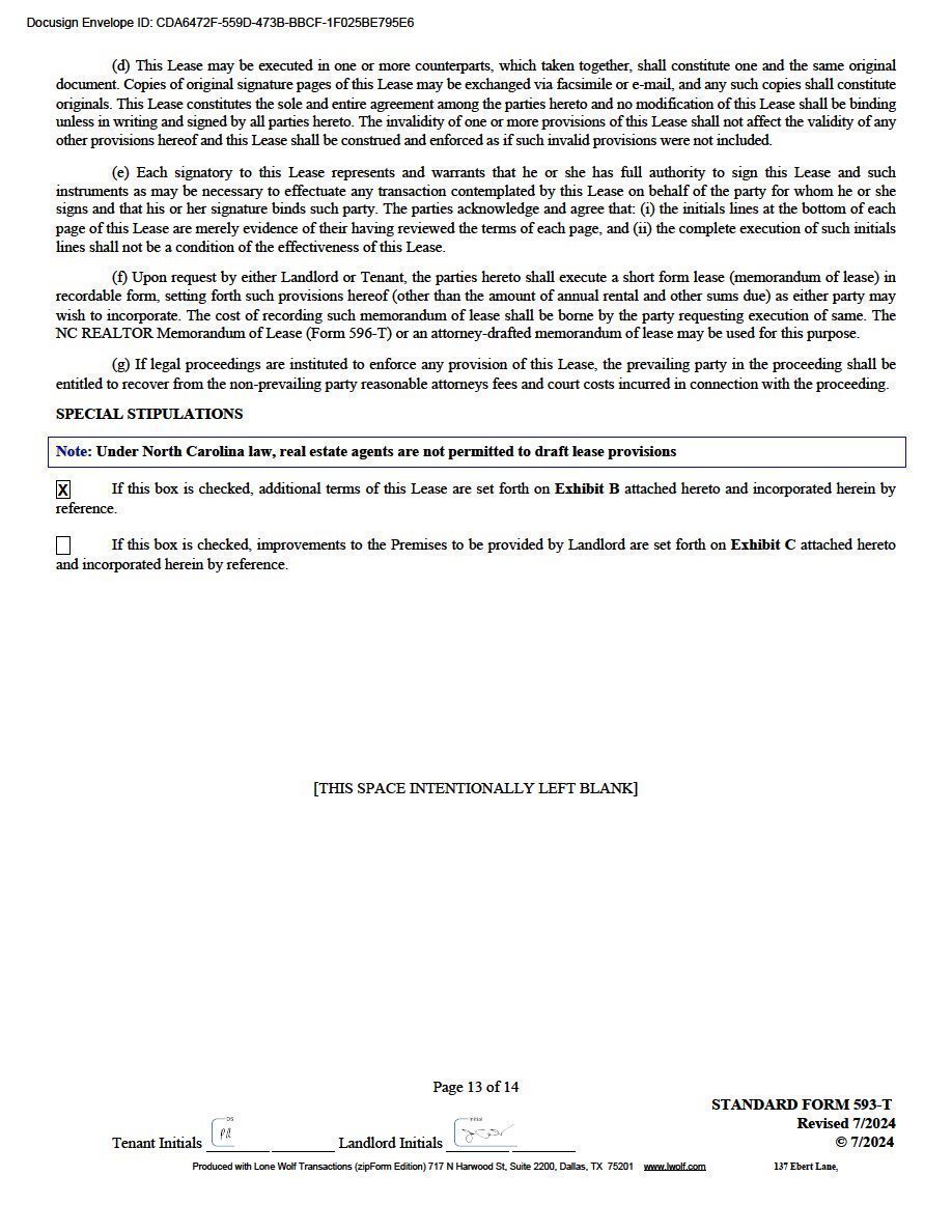 Tenant acknowledges receipt of un-signed and un-recorded copies of the Declaration of Park 35 Condominium and the Park 35 Condominium Plat to be filed in the Register of Deeds for Iredell County, North Carolina, in substantially the same forms as received by Tenant, the Bylaws of Park 35 Condominium Owners Association, Inc., and the Rules and Regulations and Sign Standards applicable to the Premises (collectively, the “Condominium Documents”), and Tenant acknowledges that the Premises is subject in all respects to the provisions of the Condominium Documents and Tenant agrees to comply with the terms thereof.