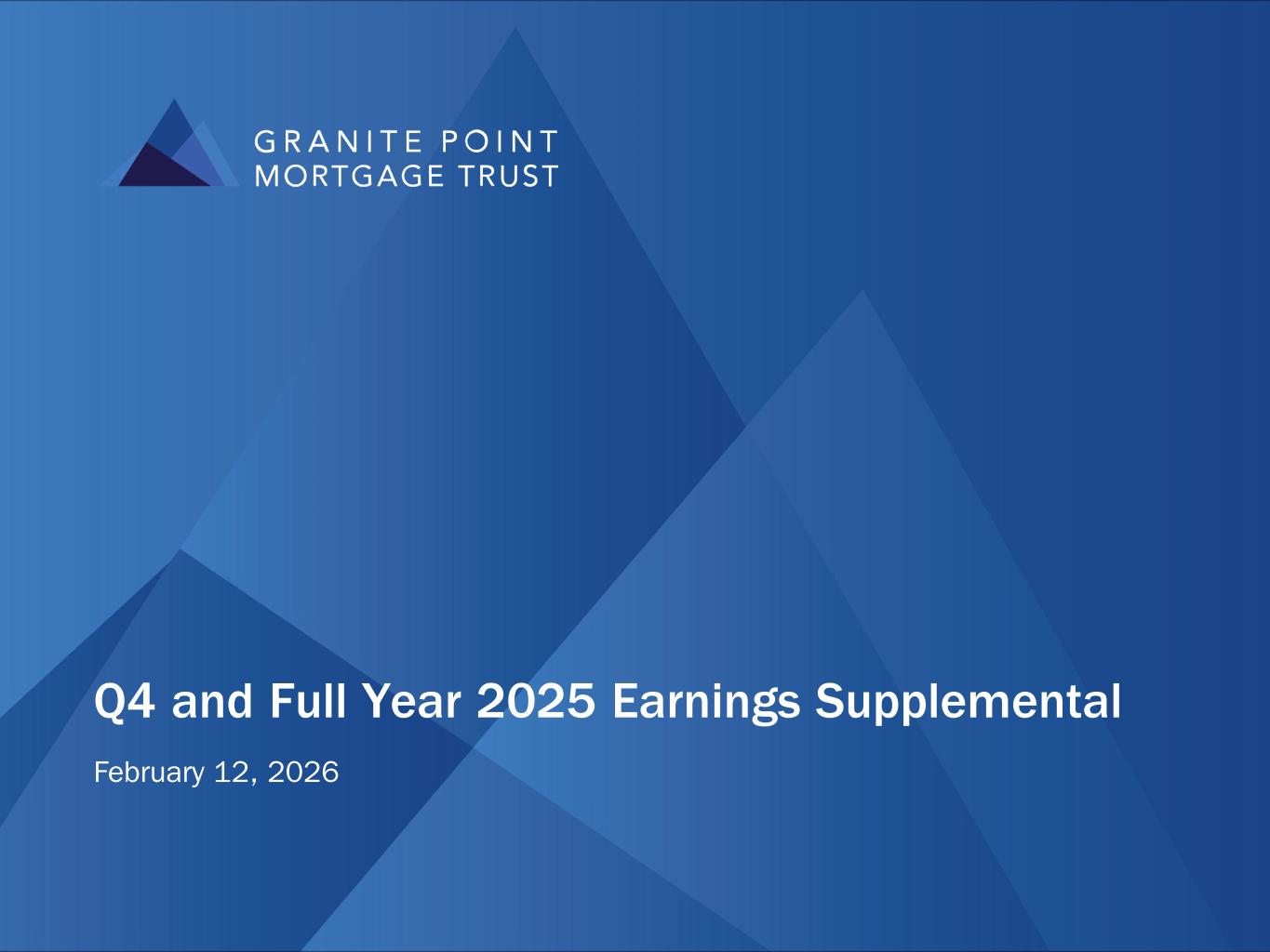 Consolidated Balance Sheets 21 GRANITE POINT MORTGAGE TRUST INC. CONSOLIDATED BALANCE SHEETS (in thousands, except share data) December 31, 2025 December 31, 2024 ASSETS (unaudited) Loans held-for-investment $ 1,683,644 $ 2,097,375 Allowance for credit losses (145,912) (199,727) Loans held-for-investment, net 1,537,732 1,897,648 Cash and cash equivalents 65,958 87,788 Restricted cash 14,108 26,682 Real estate owned, net 92,039 42,815 Accrued interest receivable 7,594 8,668 Other assets 37,793 51,514 Total Assets $ 1,755,224 $ 2,115,115 LIABILITIES AND STOCKHOLDERS’ EQUITY Liabilities Repurchase facilities $ 439,173 597,874 Securitized debt obligations 643,528 788,313 Secured credit facility 71,774 86,774 Mortgage loan payable 17,546 — Dividends payable 6,164 6,238 Other liabilities 24,227 16,699 Total Liabilities 1,202,412 $ 1,495,898 Stockholders’ Equity 7.00% Series A Fixed-to-Floating Rate Cumulative Redeemable Preferred Stock, par value $0.01 per share; 11,500,000 shares authorized, and 8,229,500 and 8,229,500 shares issued and outstanding, respectively; liquidation preference $25.00 per share 82 82 Common Stock, par value $0.01 per share; 450,000,000 shares authorized, and 47,563,643 shares and 48,801,690 issued and outstanding, respectively 476 488 Additional paid-in capital 1,195,279 1,195,823 Cumulative earnings (180,708) (139,556) Cumulative distributions to stockholders (462,442) (437,745) Total Granite Point Mortgage Trust Inc. Stockholders’ Equity 552,687 619,092 Non-controlling interests 125 125 Total Equity 552,812 619,217 Total Liabilities and Stockholders’ Equity $ 1,755,224 $ 2,115,115