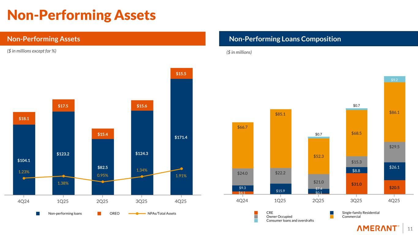 2 Important Notices and Disclaimers Forward-Looking Statements This presentation contains “forward-looking statements” including statements with respect to the Company’s objectives, expectations and intentions and other statements that are not historical facts. Examples of forward-looking statements include but are not limited to: our future operating or financial performance, including revenues, expenses, expense savings, income or loss and earnings or loss per share, and other financial items; statements regarding expectations, plans or objectives for future operations, products or services, and our expectations on loan recoveries or reaching positive resolutions on problem loans. All statements other than statements of historical fact are statements that could be forward-looking statements. You can identify these forward-looking statements through our use of words such as “may,” “will,” “anticipate,” “assume,” “should,” “indicate,” “would,” “believe,” “contemplate,” “expect,” “estimate,” “continue,” “plan,” “point to,” “project,” “could,” “intend,” “target,” “goals,” “outlook,” “modeled,” “dedicated,” “create,”and other similar words and expressions of the future. Forward-looking statements, including those relating to our beliefs, plans, objectives, goals, expectations, anticipations, estimates and intentions, involve known and unknown risks, uncertainties and other factors, which may be beyond our control, and which may cause the Company’s actual results, performance, achievements, or financial condition to be materially different from future results, performance, achievements, or financial condition expressed or implied by such forward-looking statements. You should not rely on any forward-looking statements as predictions of future events. You should not expect us to update any forward-looking statements, except as required by law. All written or oral forward-looking statements attributable to us are expressly qualified in their entirety by this cautionary notice, together with those risks and uncertainties described in “Risk factors” in our annual report on Form 10-K for the fiscal year ended December 31, 2024 filed on March 5, 2025, and in our other filings with the U.S. Securities and Exchange Commission (the “SEC”), which are available at the SEC’s website www.sec.gov. Interim Financial Information Unaudited financial information as of and for interim periods, including the three month periods ended September 30, 2025, June 30, 2025, March 31, 2025, and the three and twelve month periods ended December 31, 2025, may not reflect our results of operations for our fiscal year ended, or financial condition as of December 31, 2025, or any other period of time or date. Non-GAAP Financial Measures The Company supplements its financial results that are determined in accordance with accounting principles generally accepted in the United States of America (“GAAP”) with non-GAAP financial measures, such as “pre-provision net revenue (PPNR)”, “core pre-provision net revenue (Core PPNR)”, “core noninterest income”, “core noninterest expense”, “core net income”, “core earnings per share (basic and diluted)”, “core return on assets(Core ROA)”, “core return on equity (Core ROE)”, “core efficiency ratio”, "tangible common equity ratio", and “tangible stockholders’ equity (book value) per common share" . This supplemental information is not required by, or is not presented in accordance with GAAP. The Company refers to these financial measures and ratios as “non-GAAP financial measures”. We use certain non-GAAP financial measures, including those mentioned above, both to explain our results to shareholders and the investment community and in the internal evaluation and management of our business. Management believes that these supplementary non-GAAP financial measures and the information they provide are useful to investors since these measures permit investors to view our performance using the same tools that our management uses to evaluate our past performance and prospects for future performance. While we believe that these non-GAAP financial measures are useful in evaluating our performance, this information should be considered as supplemental and not as a substitute for or superior to the related financial information prepared in accordance with GAAP. Additionally, these non-GAAP financial measures may differ from similar measures presented by other companies. Appendix 1 reconciles these non-GAAP financial measures to reported results.