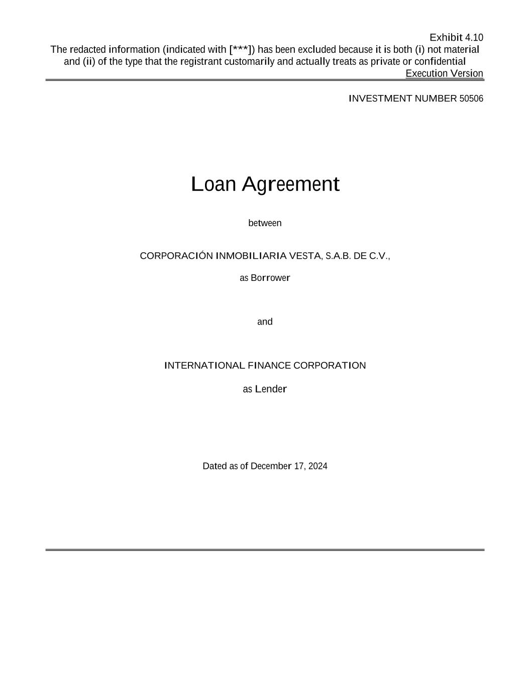 Exhibit 4.10 The redacted information (indicated with [***]) has been excluded because it is both (i) not material and (ii) of the type that the registrant customarily and actually treats as private or confidential Execution Version INVESTMENT NUMBER 50506 Loan Agreement between CORPORACIÓN INMOBILIARIA VESTA, S.A.B. DE C.V., as Borrower and INTERNATIONAL FINANCE CORPORATION as Lender Dated as of December 17, 2024