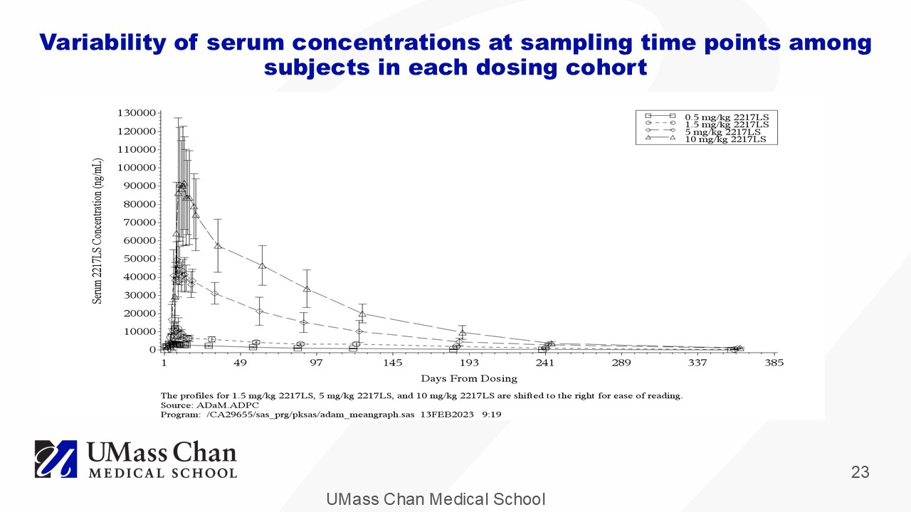 UMass Chan Medical School 23 Variability of serum concentrations at sampling time points among subjects in each dosing cohort