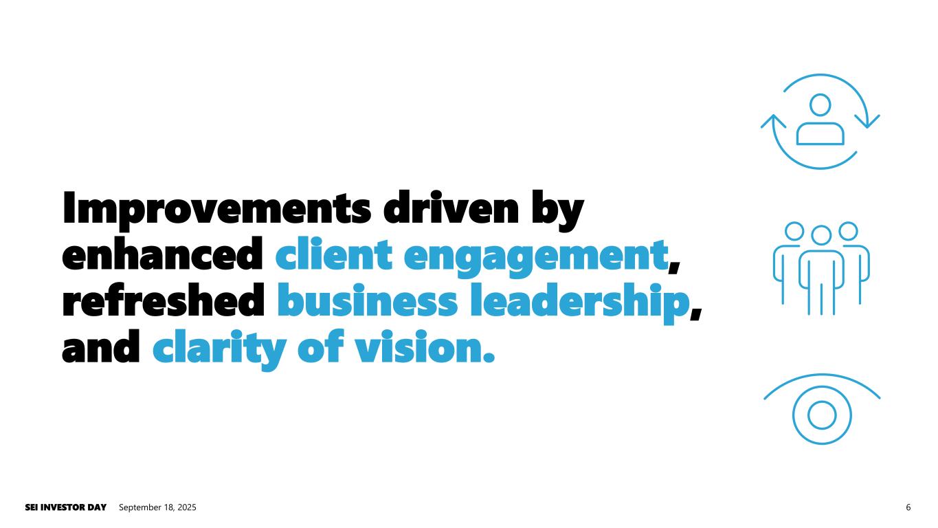 September 18, 2025SEI INVESTOR DAY 6 Improvements driven by enhanced client engagement, refreshed business leadership, and clarity of vision.