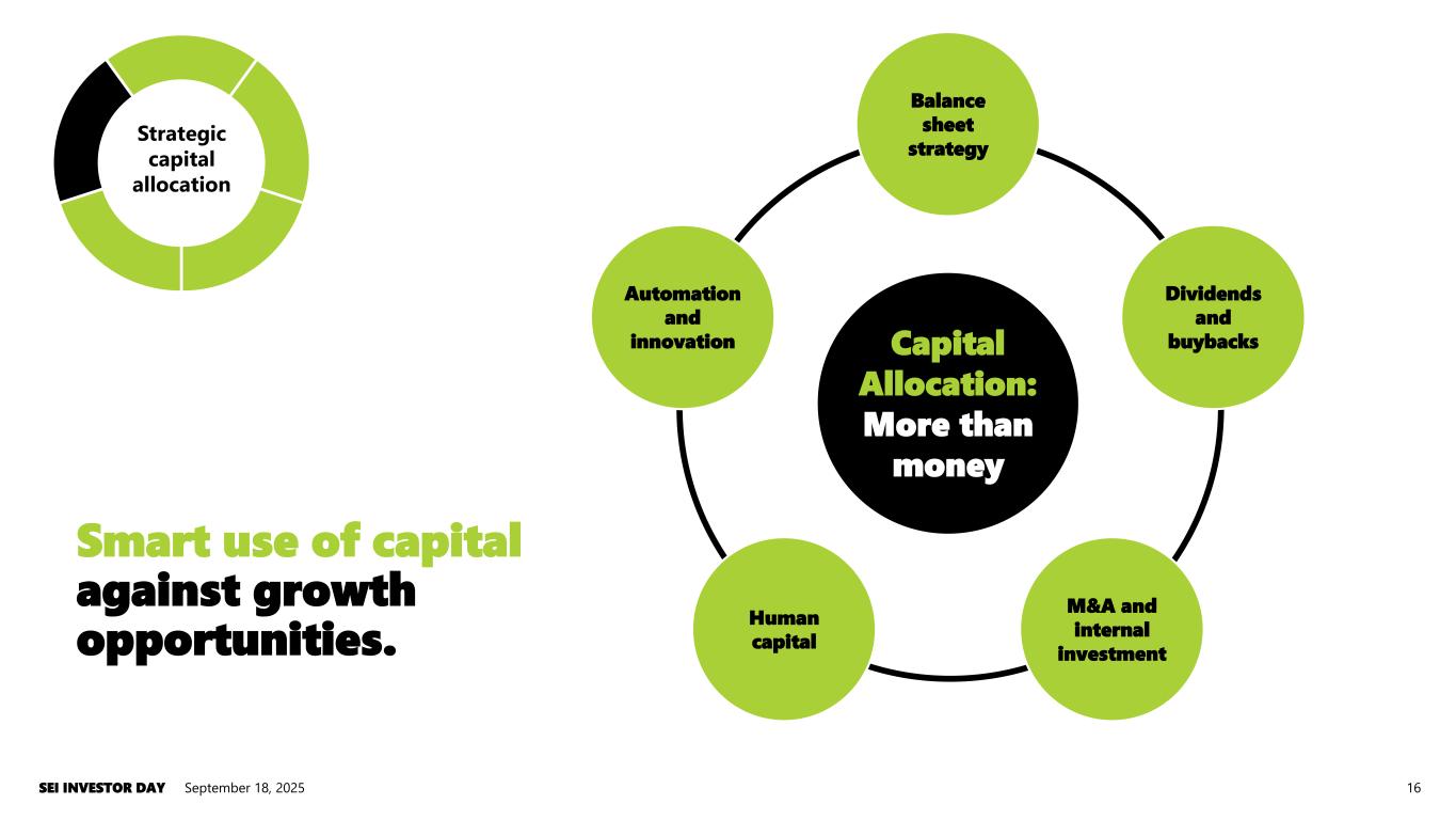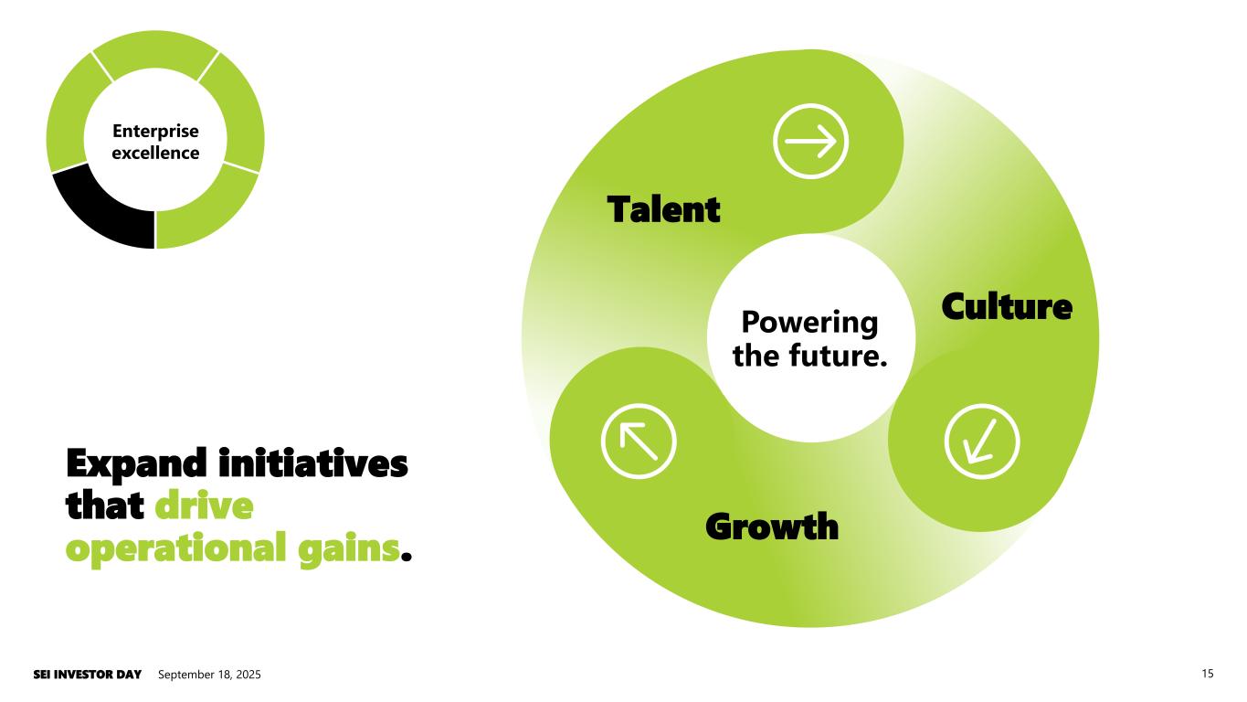 September 18, 2025SEI INVESTOR DAY 15 Expand initiatives that drive operational gains. Enterprise excellence Enterprise excellence Growth Talent CulturePowering the future.