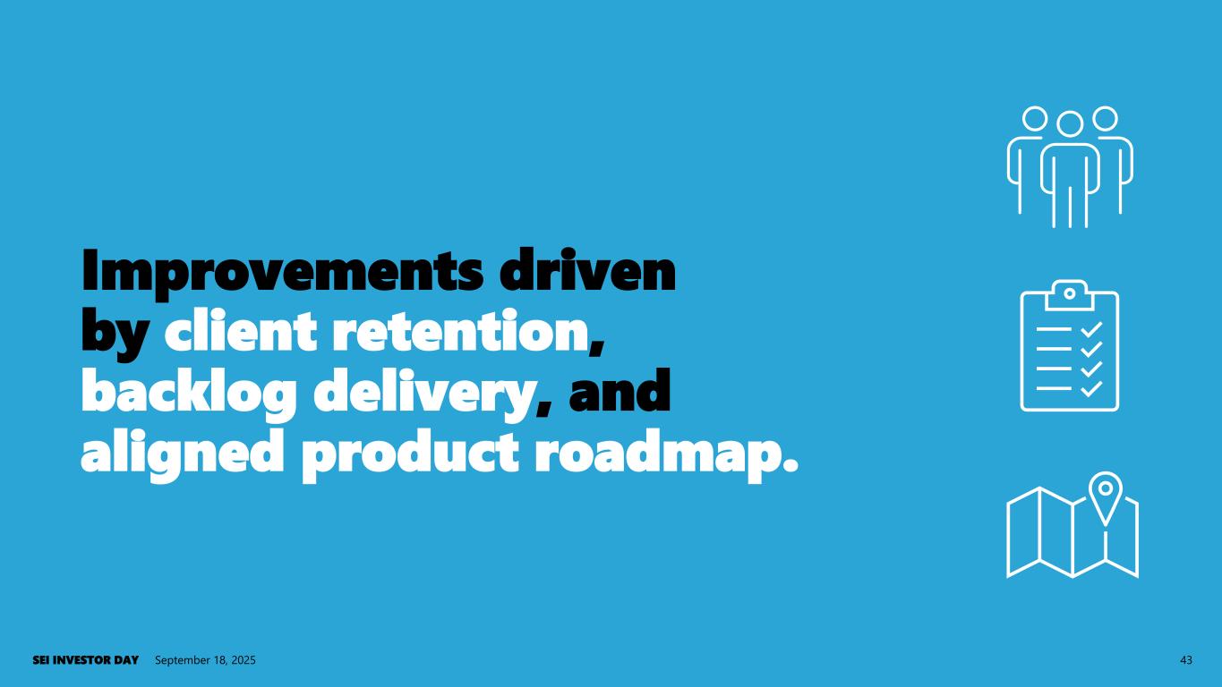 September 18, 2025SEI INVESTOR DAY 43 Improvements driven by client retention, backlog delivery, and aligned product roadmap.