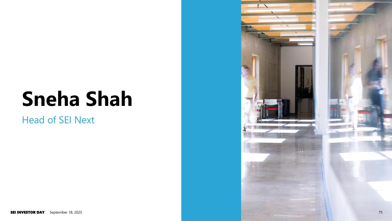Sneha Shah Head of SEI Next September 18, 2025SEI INVESTOR DAY 75