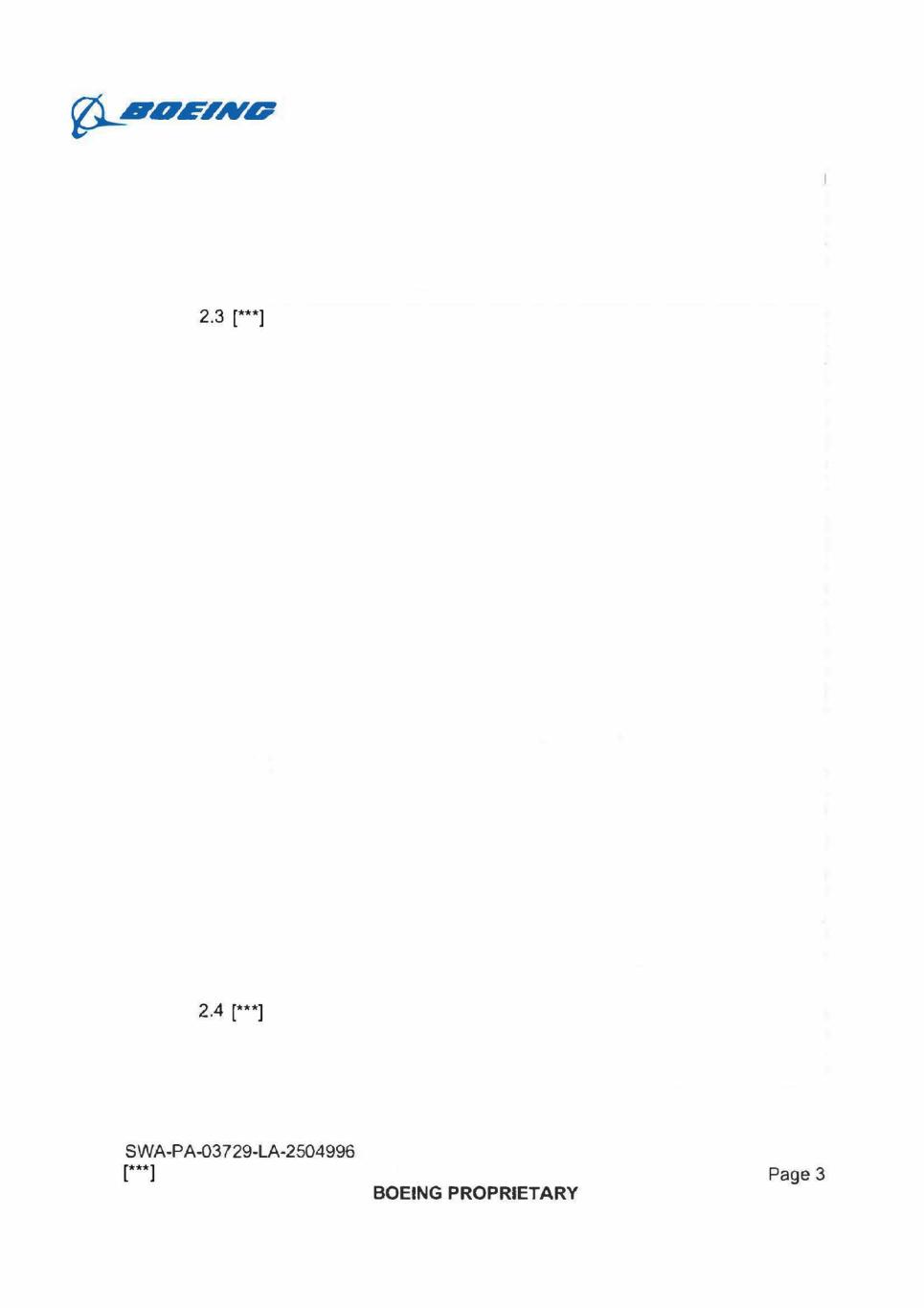 6,___4&1OwzAw 2.3 [**1 2.4 [***] SWA-PA-03729-LA-2504996 [**1 Page 3 BOEING PROPRIETARY